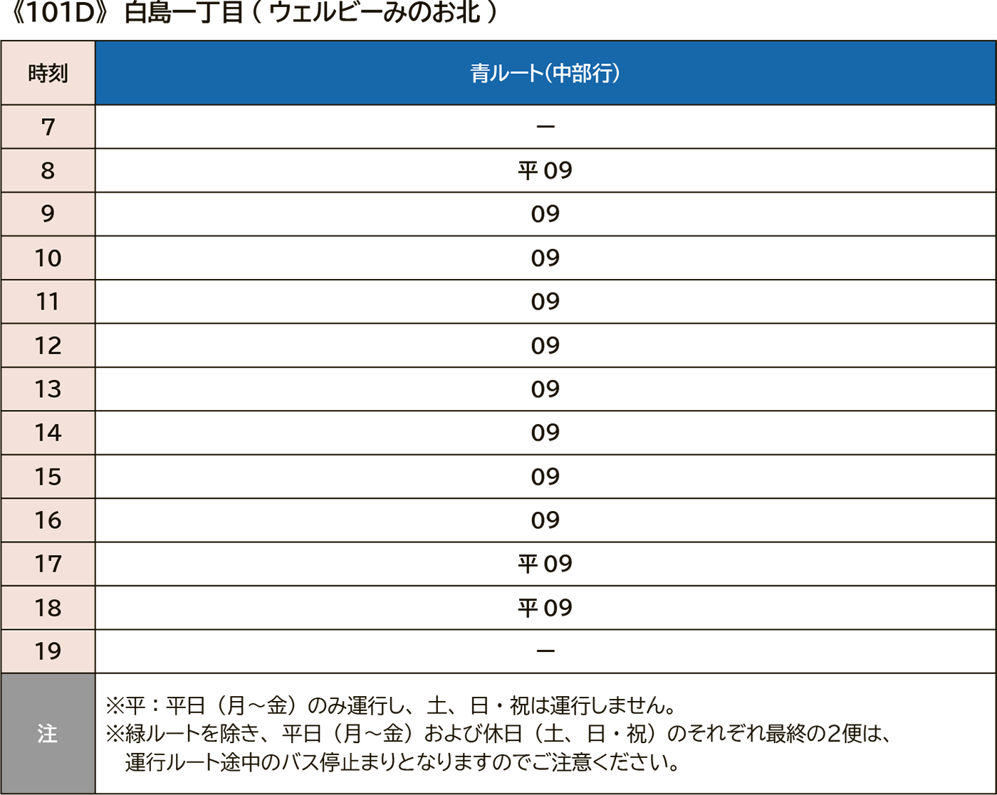 青ルート(中部・東部北循環)のバス停時刻表